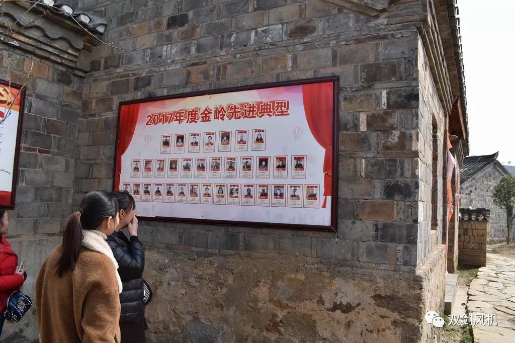 ▲在金嶺村黨支部前——“永遠跟黨走”